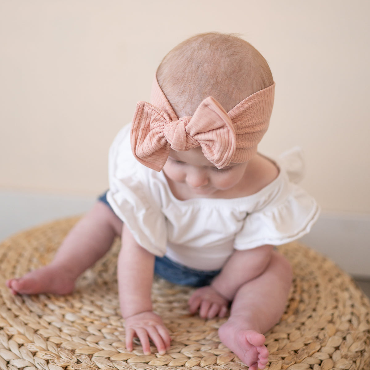 Light Pink Ribbed • Oversized Bow • Baby