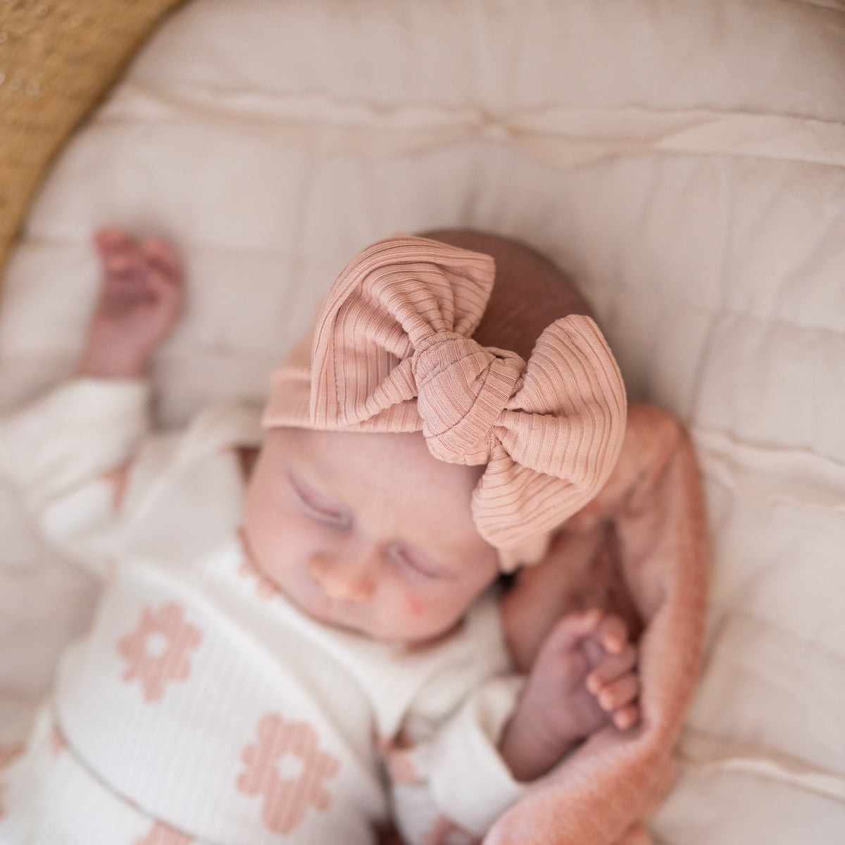 Light Pink Ribbed • Oversized Bow • Newborn