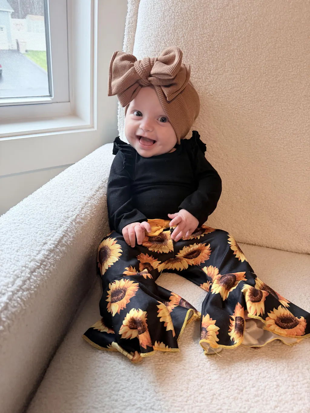 Top knot + oversized bows are fully adjustable (never glued or sewn at the knot), so you can re-tie for the perfect fit as your baby grows.