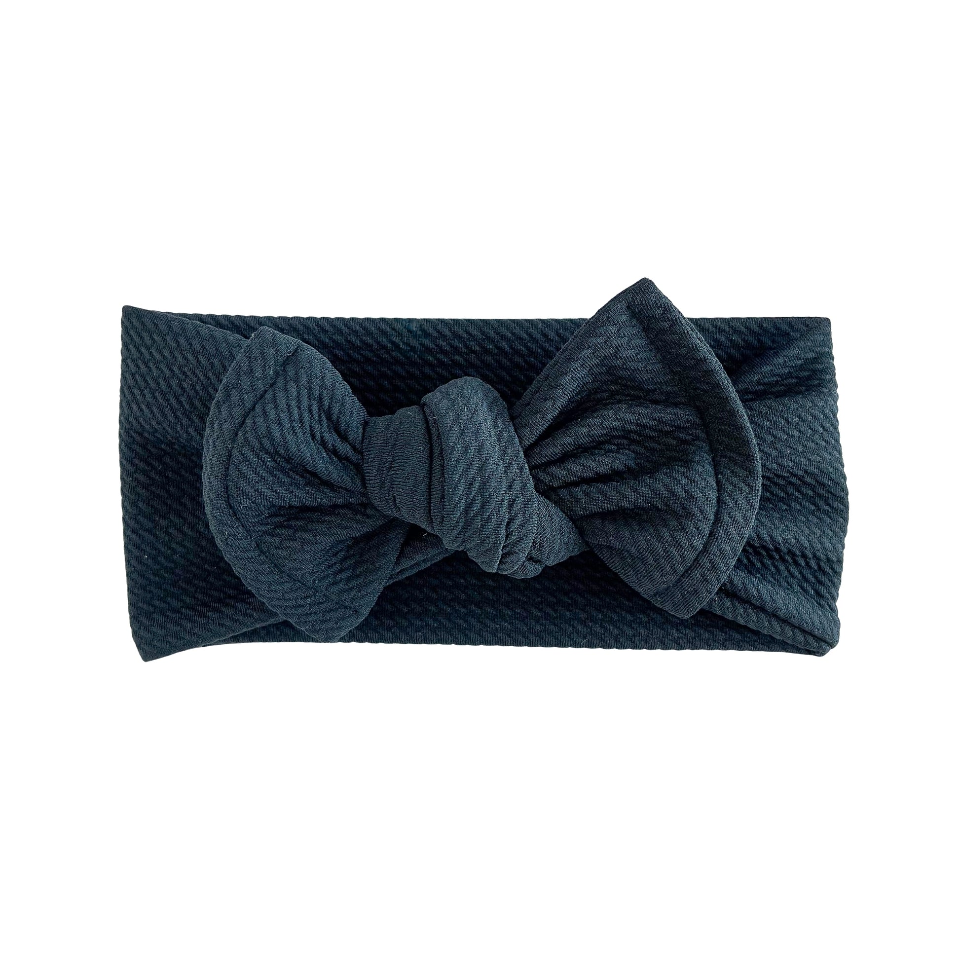 Add a playful touch to your baby's ensemble with our Chunky Liverpool Headband. Handcrafted with chunkier bullet knit, this headband adds a touch of texture to any outfit. With adjustable bows, your baby will stand out in style. (Cut and sewn by hand for a unique look!) Sorry, no Oversized Bow option for this one.
