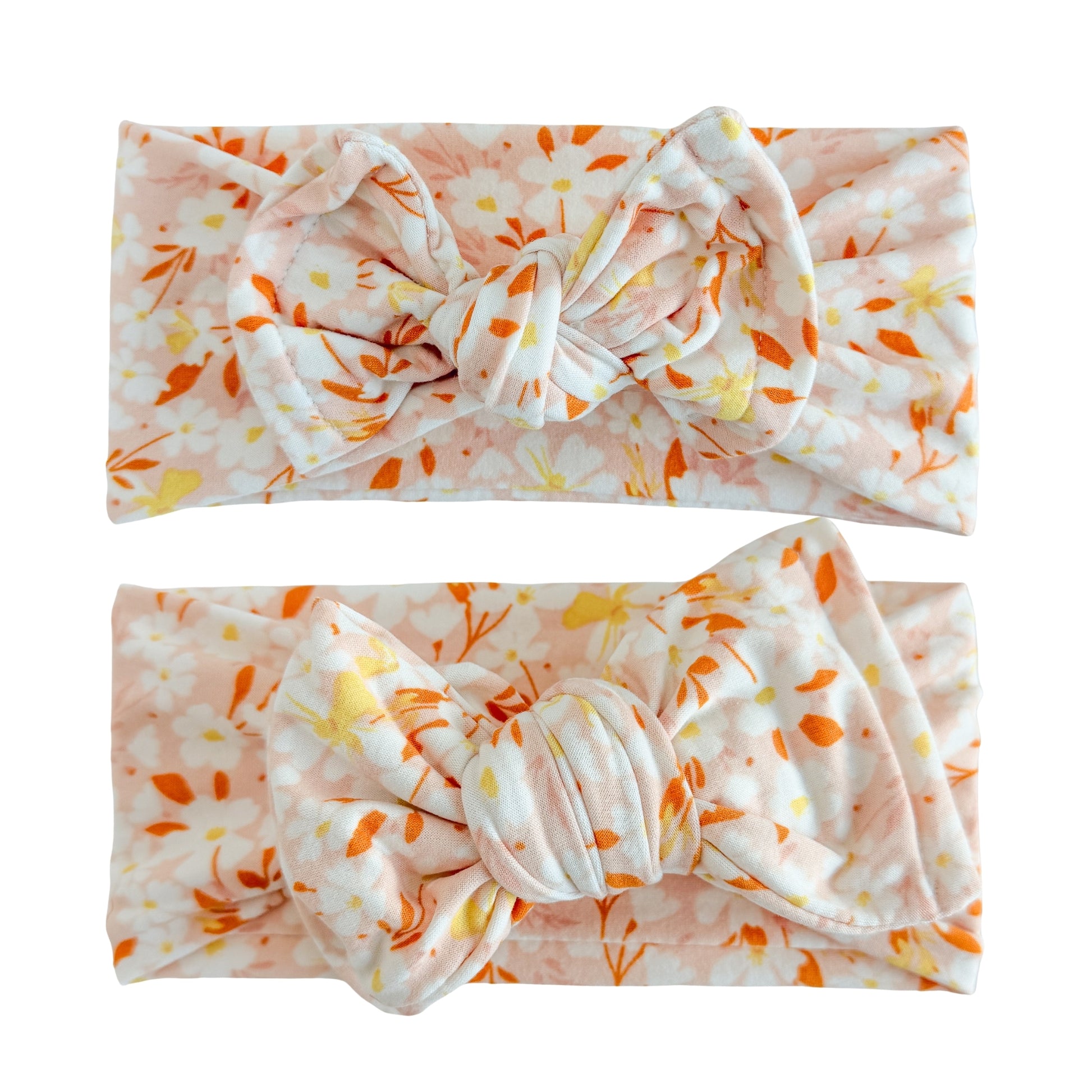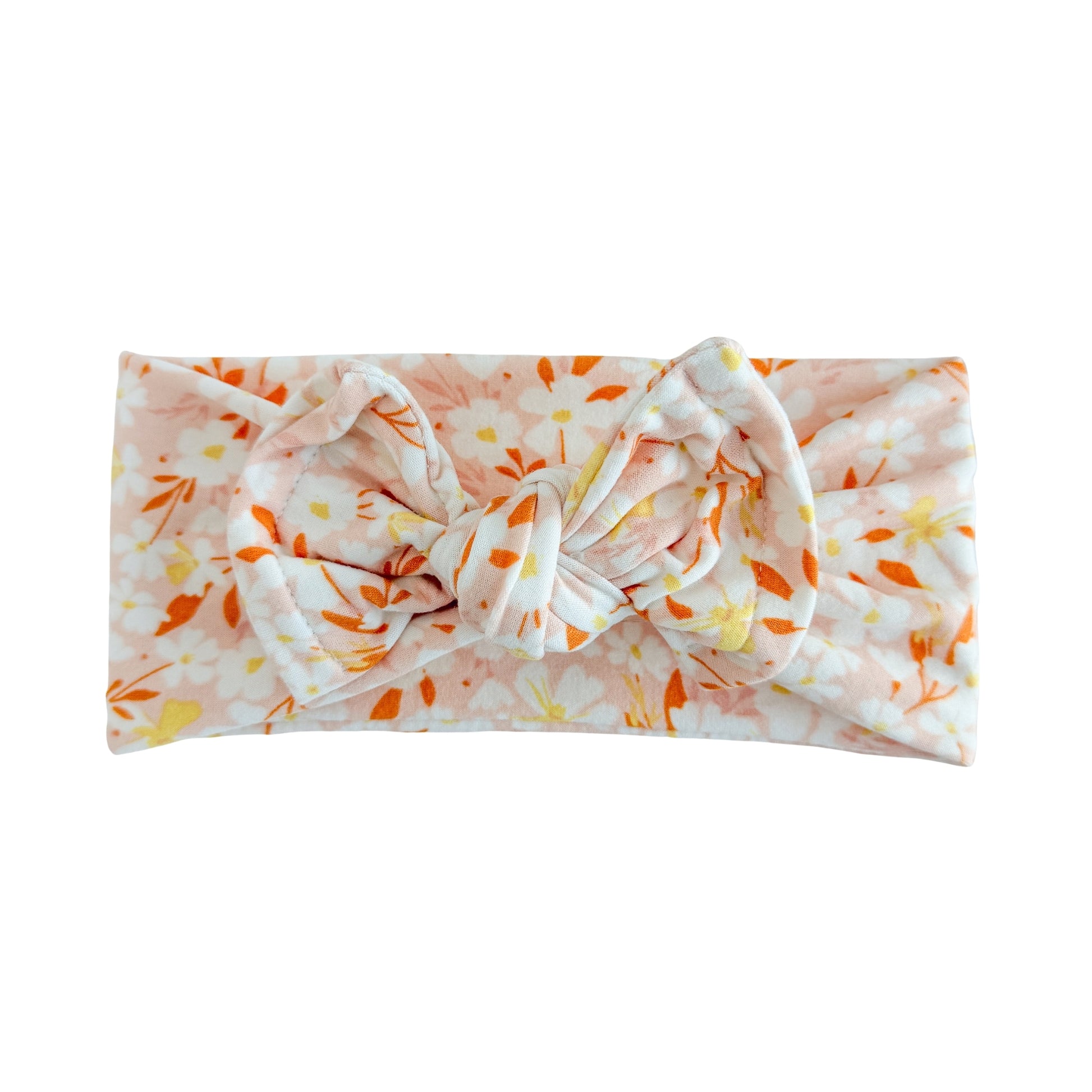 Our Blush Floral Brushed Baby Headband are hand cut, sewn, tied, and packaged by a mom of four in southern California.