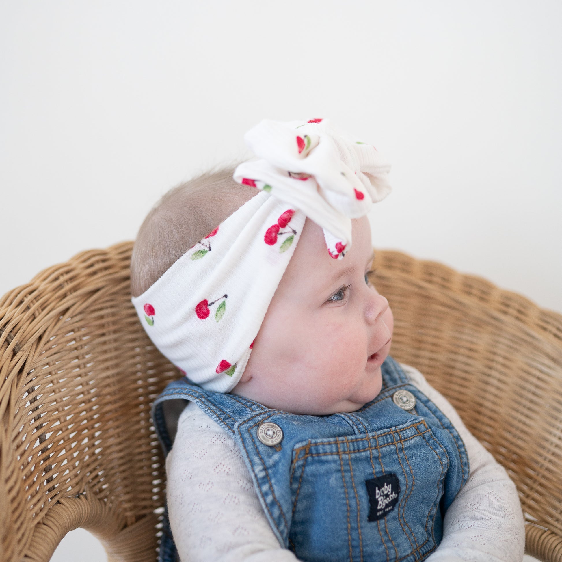 Our top knot or oversized bows are not sewn or glued at the knot, and can be retied and/or adjusted as necessary. Find us on Instagram for video tutorials showing how to retie!