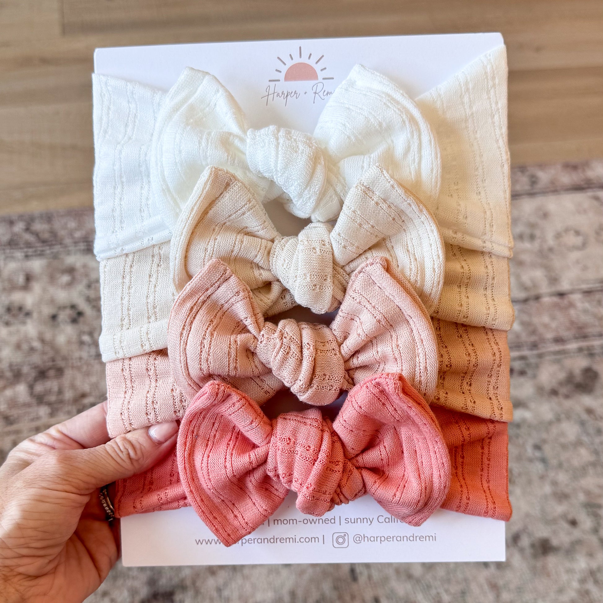 Bloom Basics (Neutral + Coral) | Pointelle Baby Bow Bundle