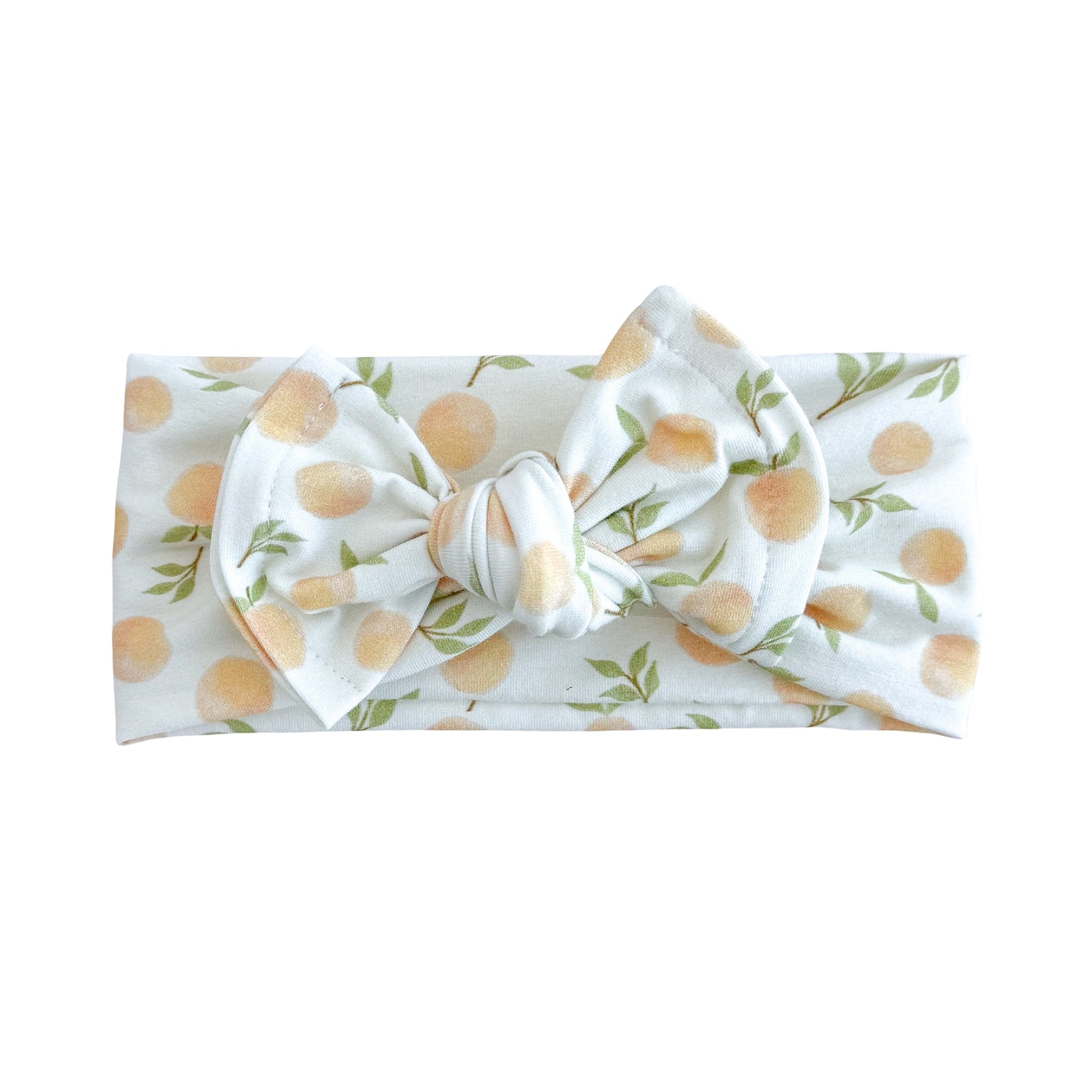 Everything is cuter with a bow on top! How adorable will your baby girl be wearing this Dainty Peaches Cotton Jersey Baby Headband at your spring activities? Hand cut and sewn, these adjustable bows are gentle on delicate skin and offer a stylish, lightweight accessory.