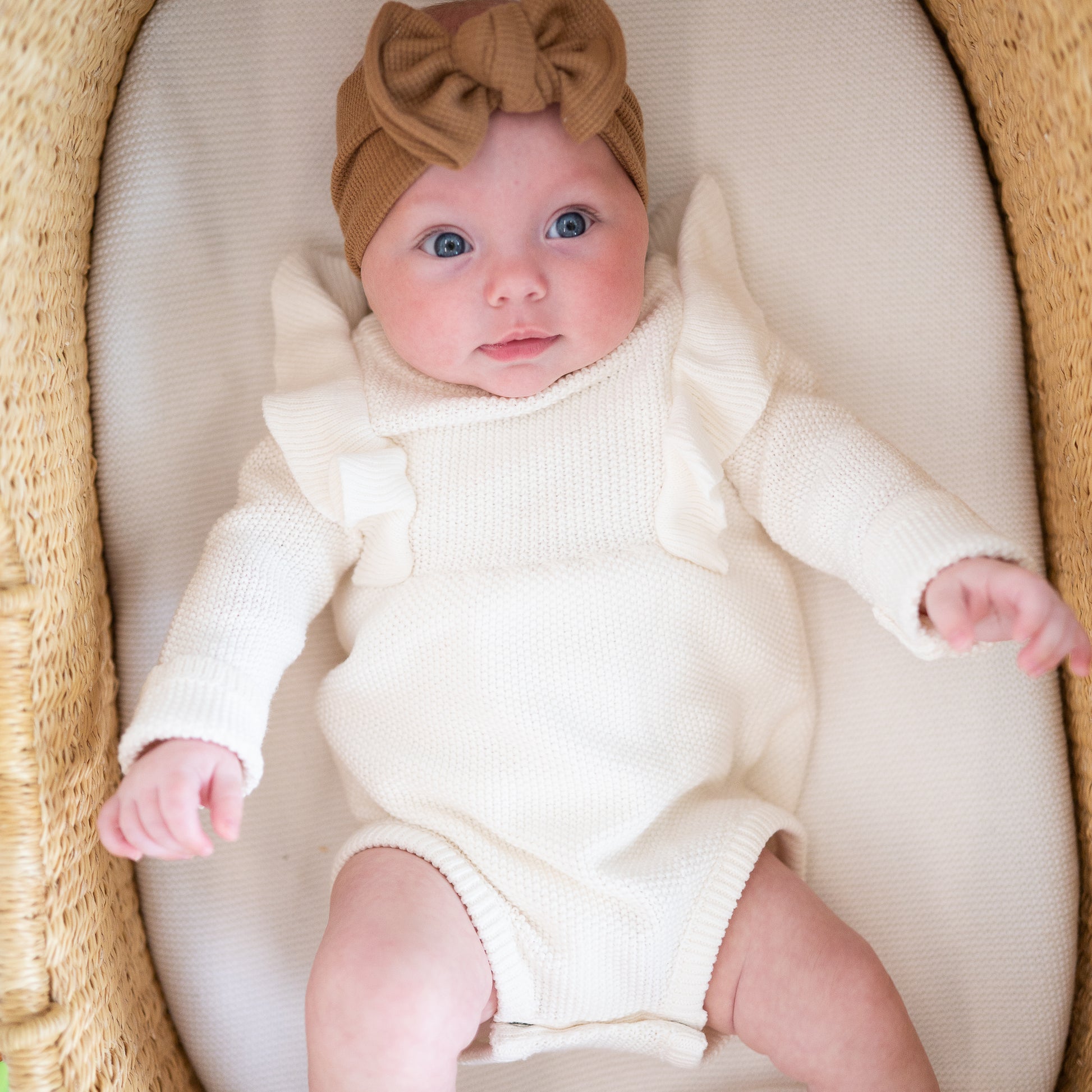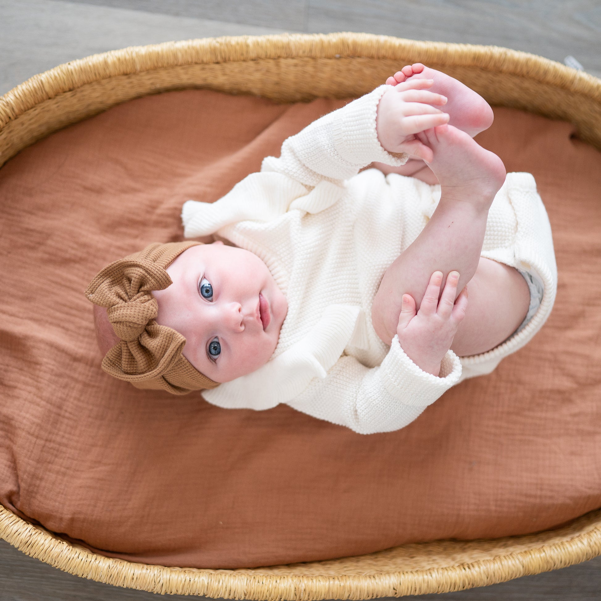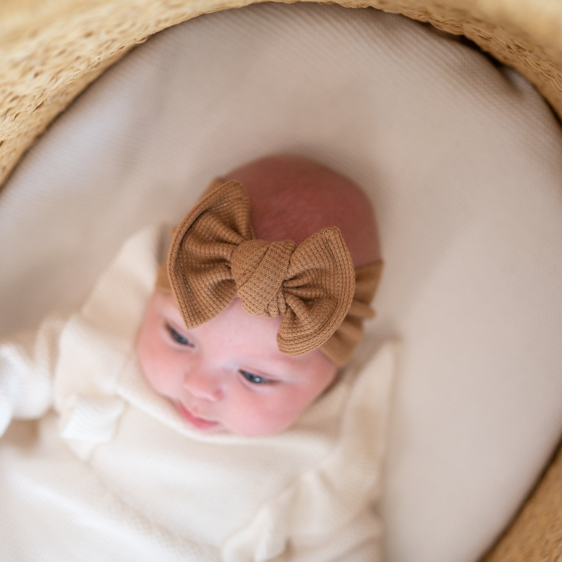 - Mocha Waffle Bow – soft, stretchy, and timeless in a cozy autumn shade