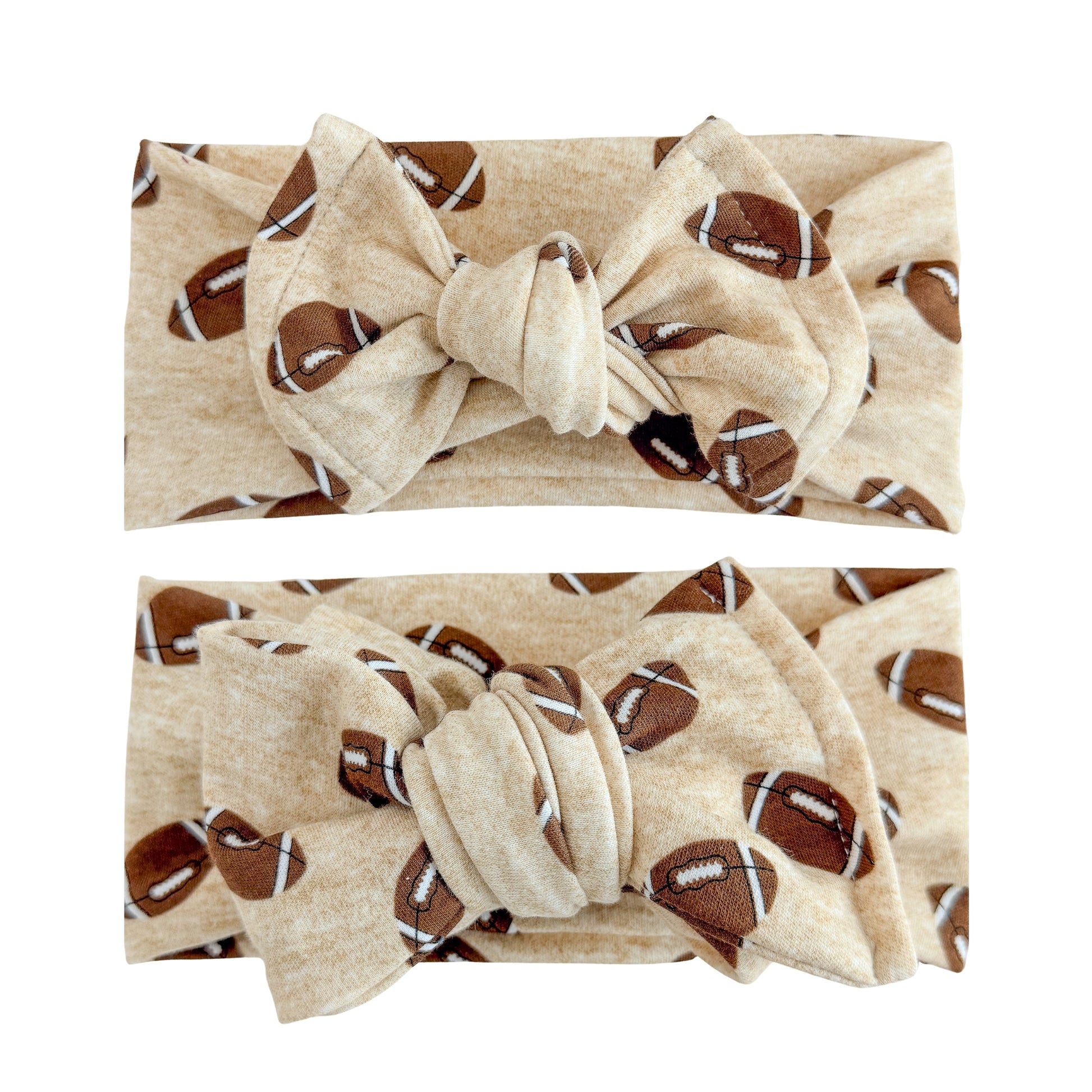 Our Football Print Cotton Jersey Baby Headbands are hand cut, sewn, tied, and packaged by a mom of four in southern California.