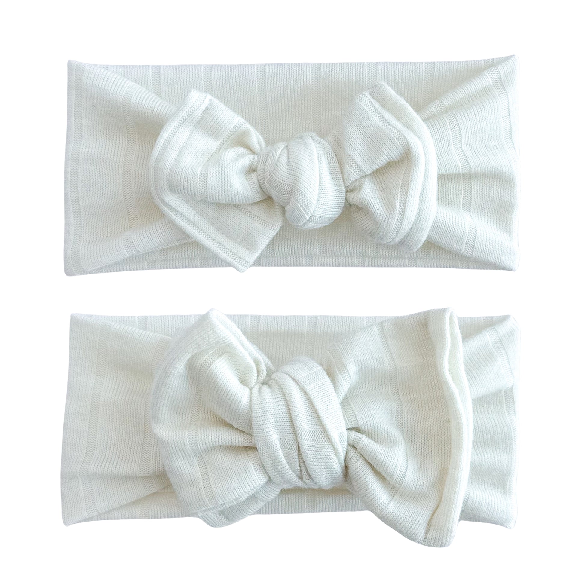 Add a dash of style and texture to your baby girl's outfit with our Ivory Wide-Ribbed Sweater Headband. Handcrafted from thicker material, these adjustable bows have got it all - a chic, structured look and gentle touch on delicate skin. Perfect for any ensemble!