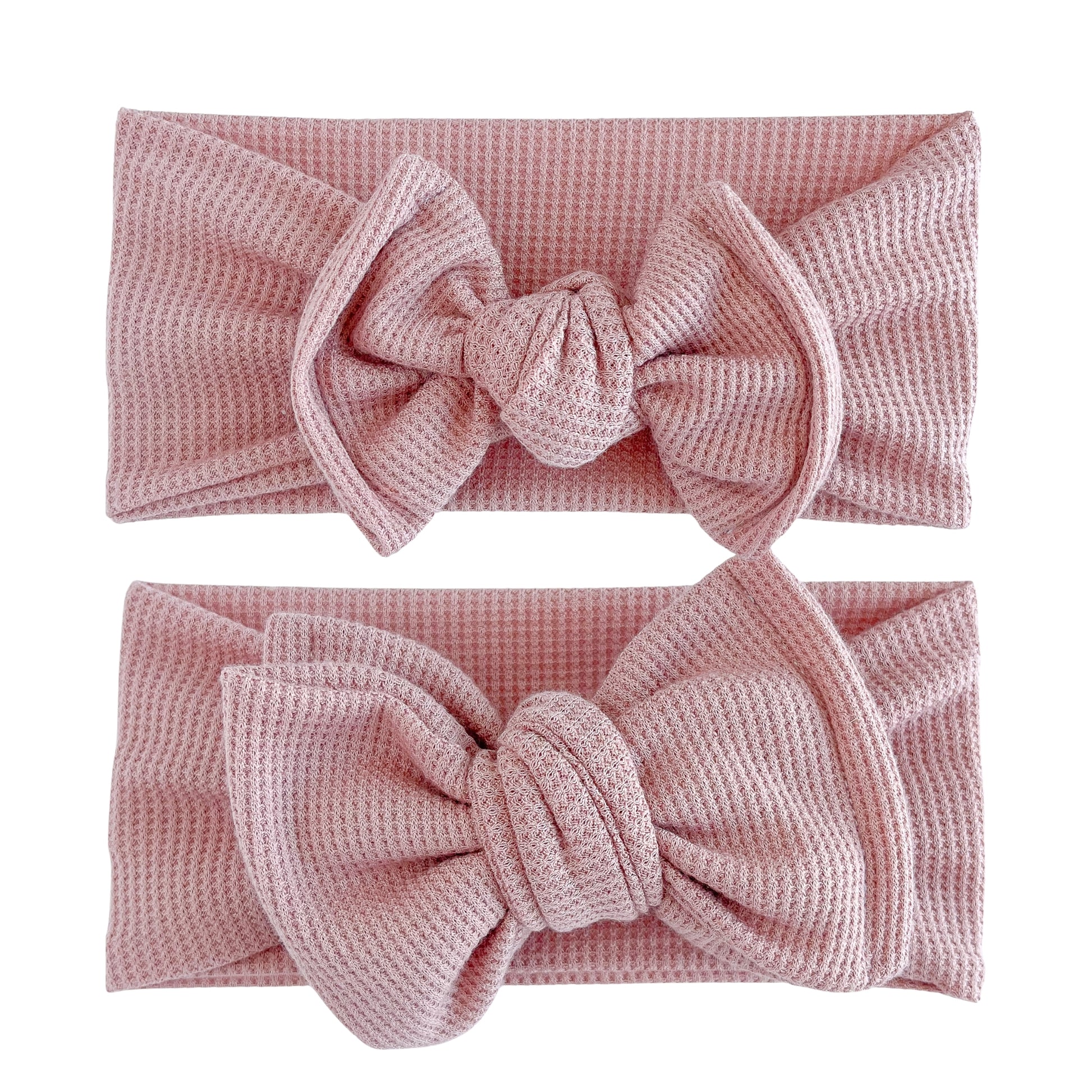 Add a touch of texture to your baby's outfit with our soft and stretchy Mauve Pink Waffle Baby Headband, available in classic top knot and oversized bow styles. Hand cut and sewn, these adjustable bows are gentle on delicate skin and offer a stylish, lightweight accessory.