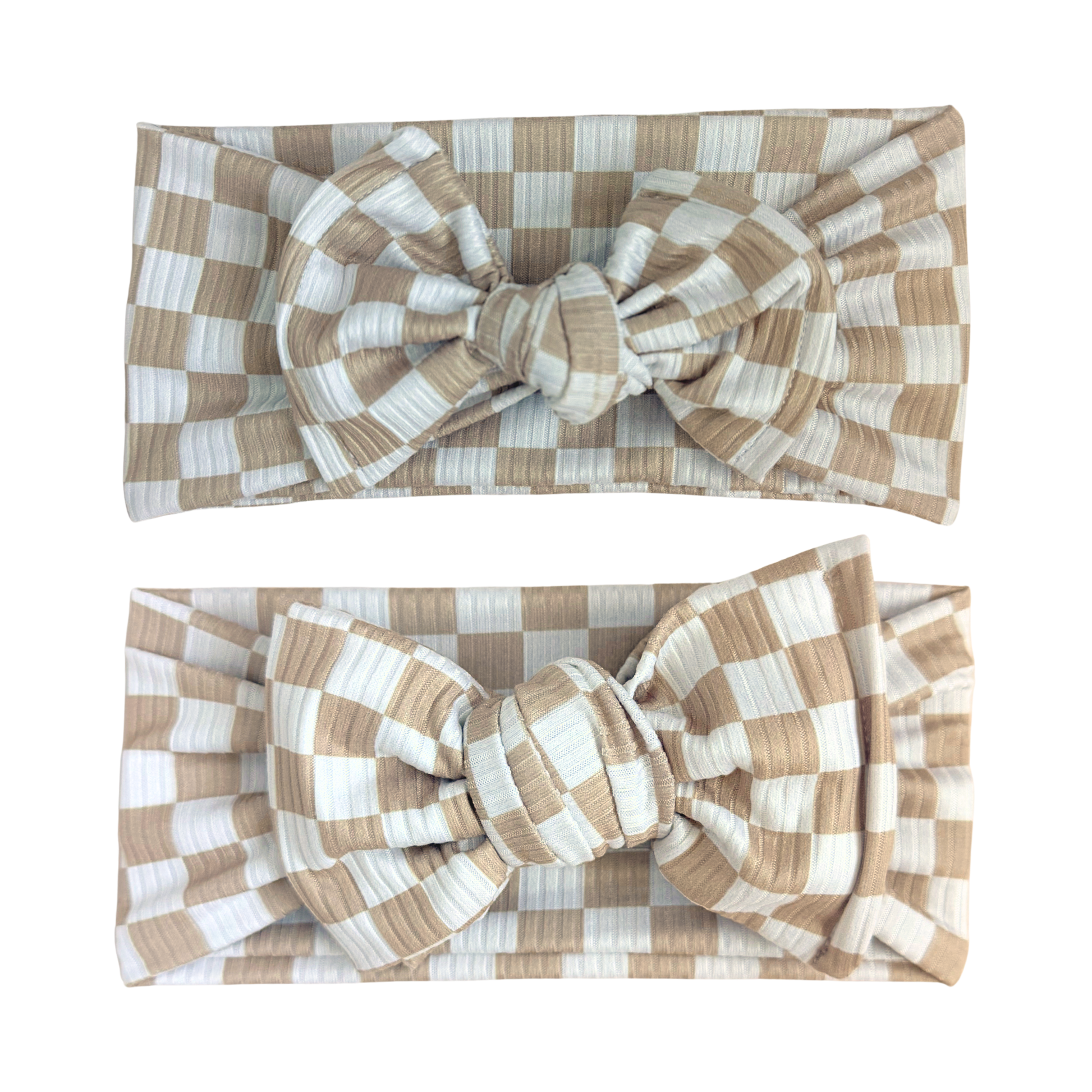Neutral Small Check Ribbed Baby Headband (Taupe + White)