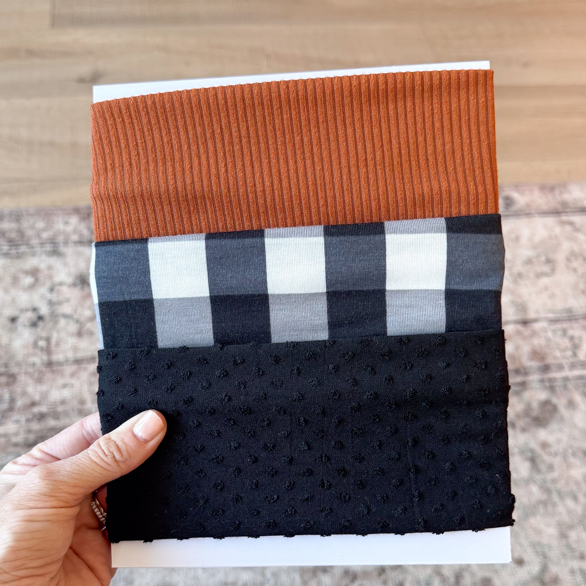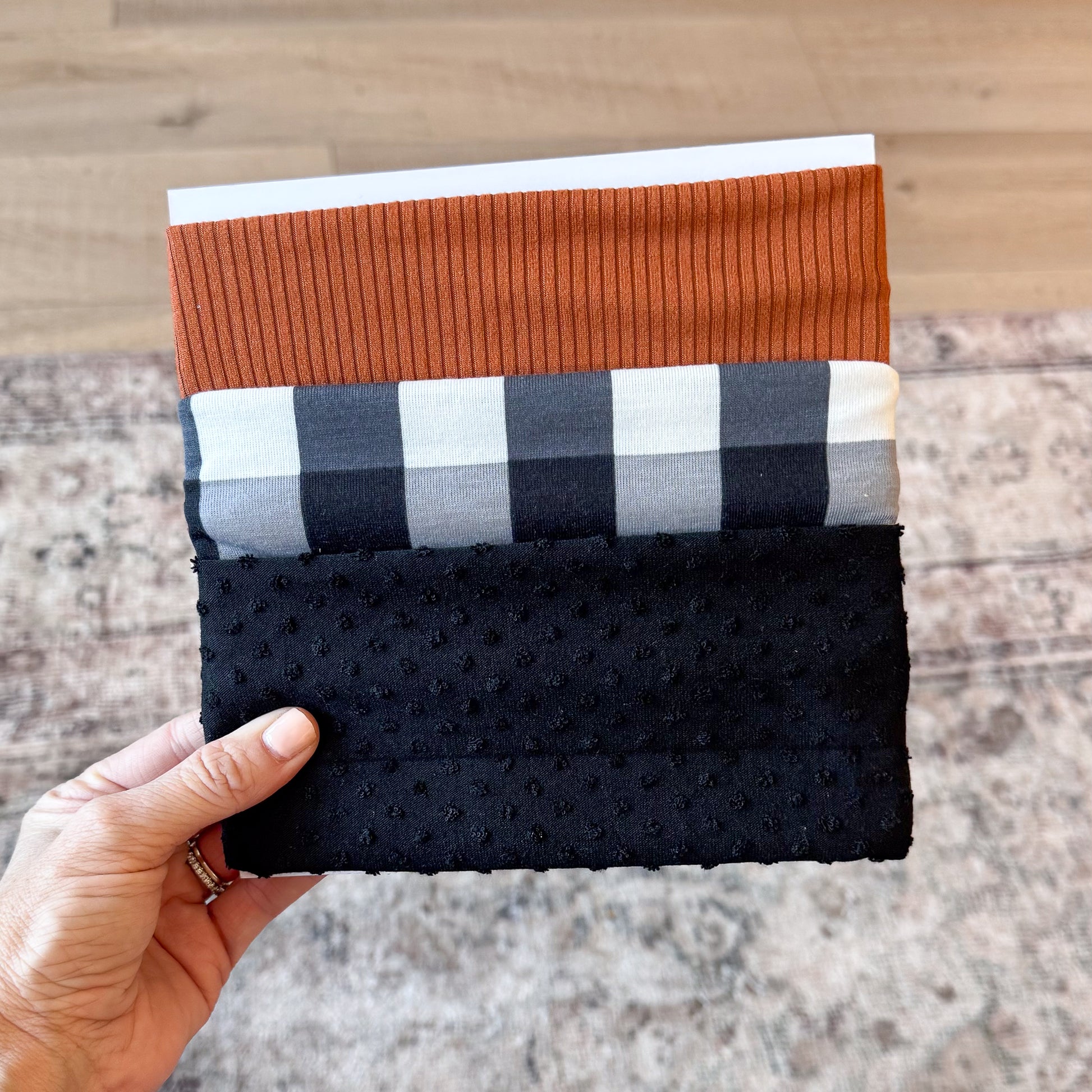 Classic patterns meet cozy fall colors in our Spice & Check Bow Bundle. This 3-pack of baby headbands includes a mix of solids, prints, and textures—available in both our Top Knot and Oversized Bow styles. Perfect for everyday wear, milestone photos, or holiday outfits, these bows are soft, stretchy, and made to grow with your baby.
