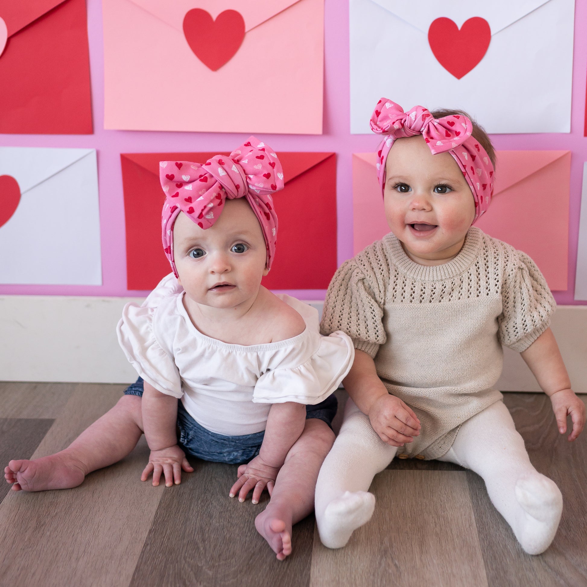 This Valentine baby bow bundle includes three thoughtfully chosen styles that pair everyday softness with festive charm. From first Valentine photos to cozy winter outfits, these bows were designed to be worn, loved, and remembered.
