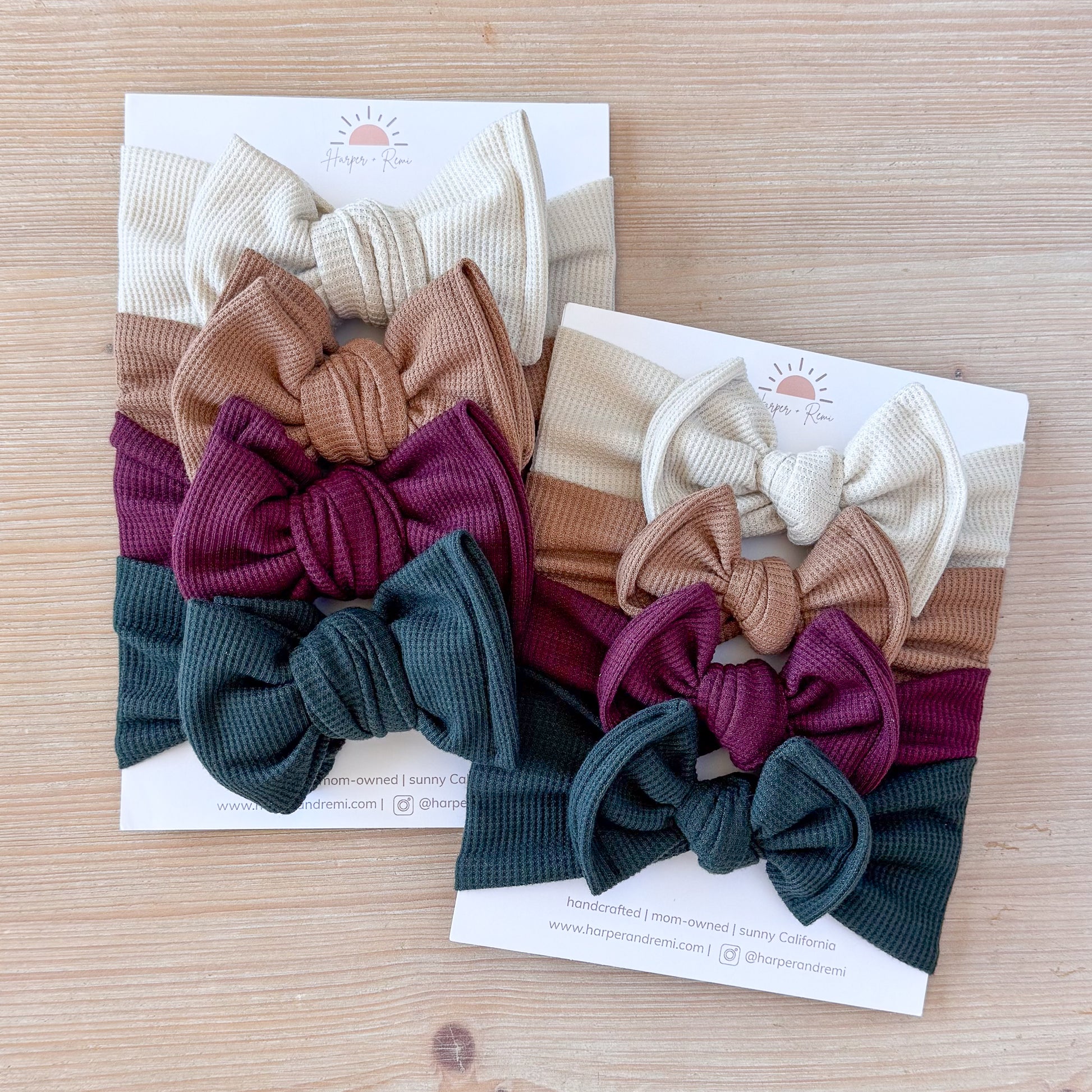 Waffle Basics Bow Bundle | Autumn Solids – Sand, Mocha, Burgundy & Dark Green 🍂