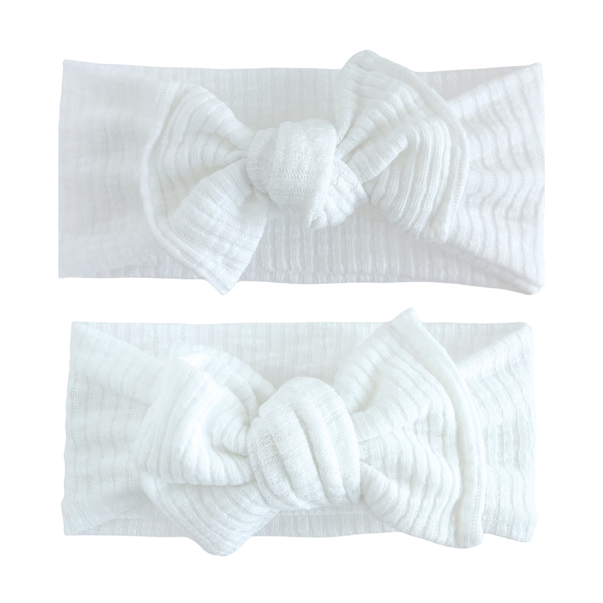 Add a touch of texture to your baby's outfit with our soft and stretchy White Crepe Ribbed Baby Headband, available in classic top knot and oversized bow styles. Hand cut and sewn, these adjustable bows are gentle on delicate skin and offer a stylish, lightweight accessory.